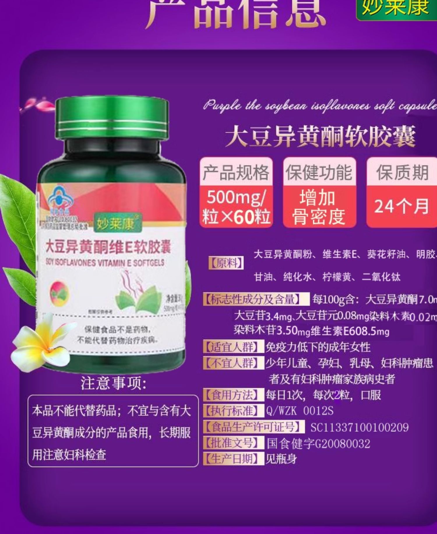 妙莱康 大豆异黄酮维E软胶囊