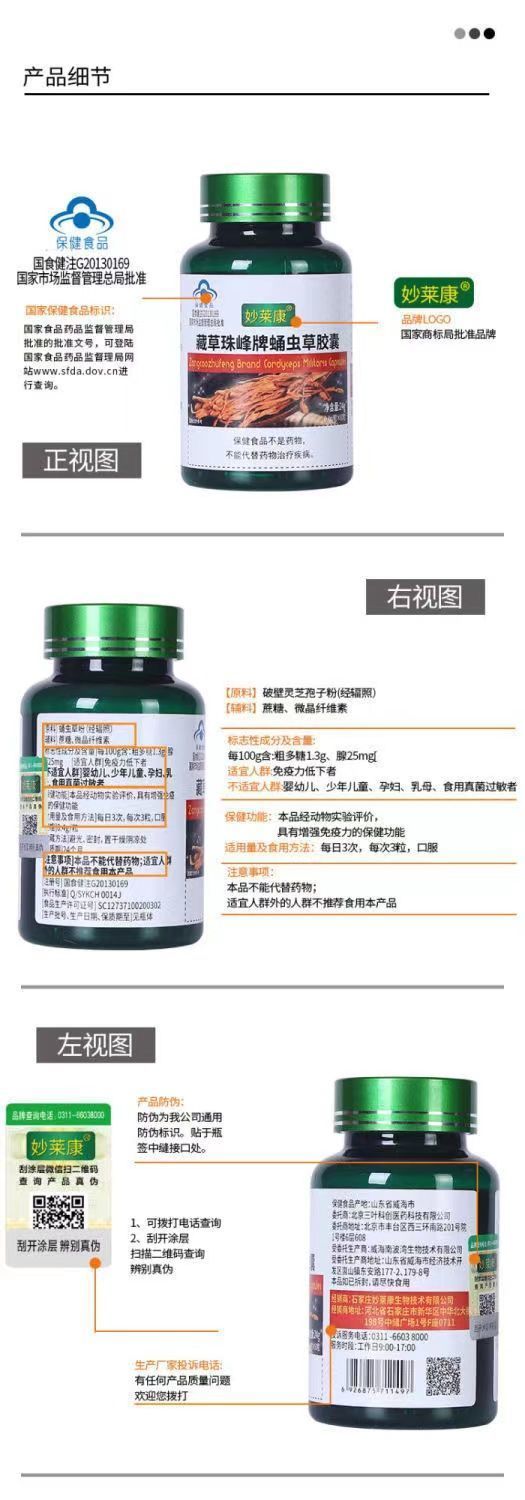 妙莱康 藏草珠峰牌蛹虫草胶囊
